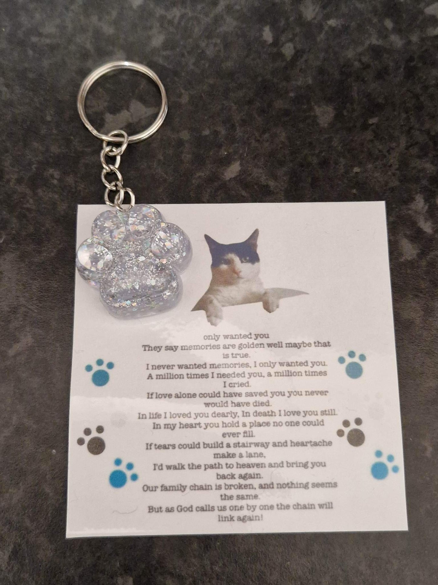 Fully customisable, please email within 24hrs of placing your order to tell us what it is you want or it will just be a random paw and poem.